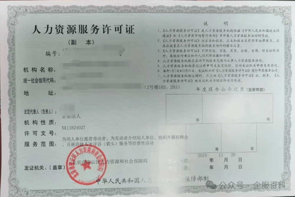 人力許可證正副本原件:看清楚!機(jī)構(gòu)名、地址和營(yíng)業(yè)執(zhí)照對(duì)不對(duì)?破了趕緊申請(qǐng)換!